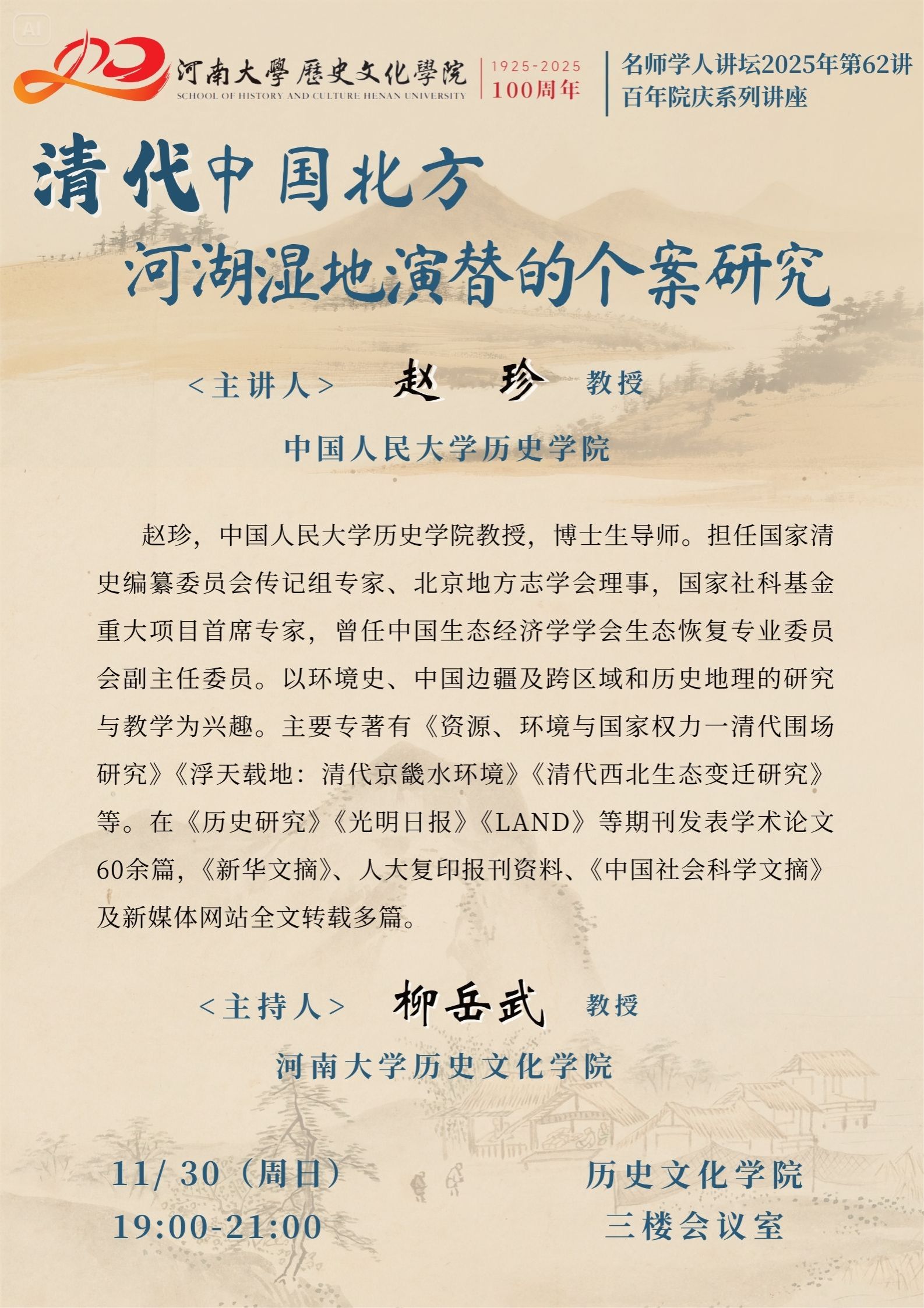 【讲座预告】赵珍:清代中国北方河湖湿地演替的个案研究