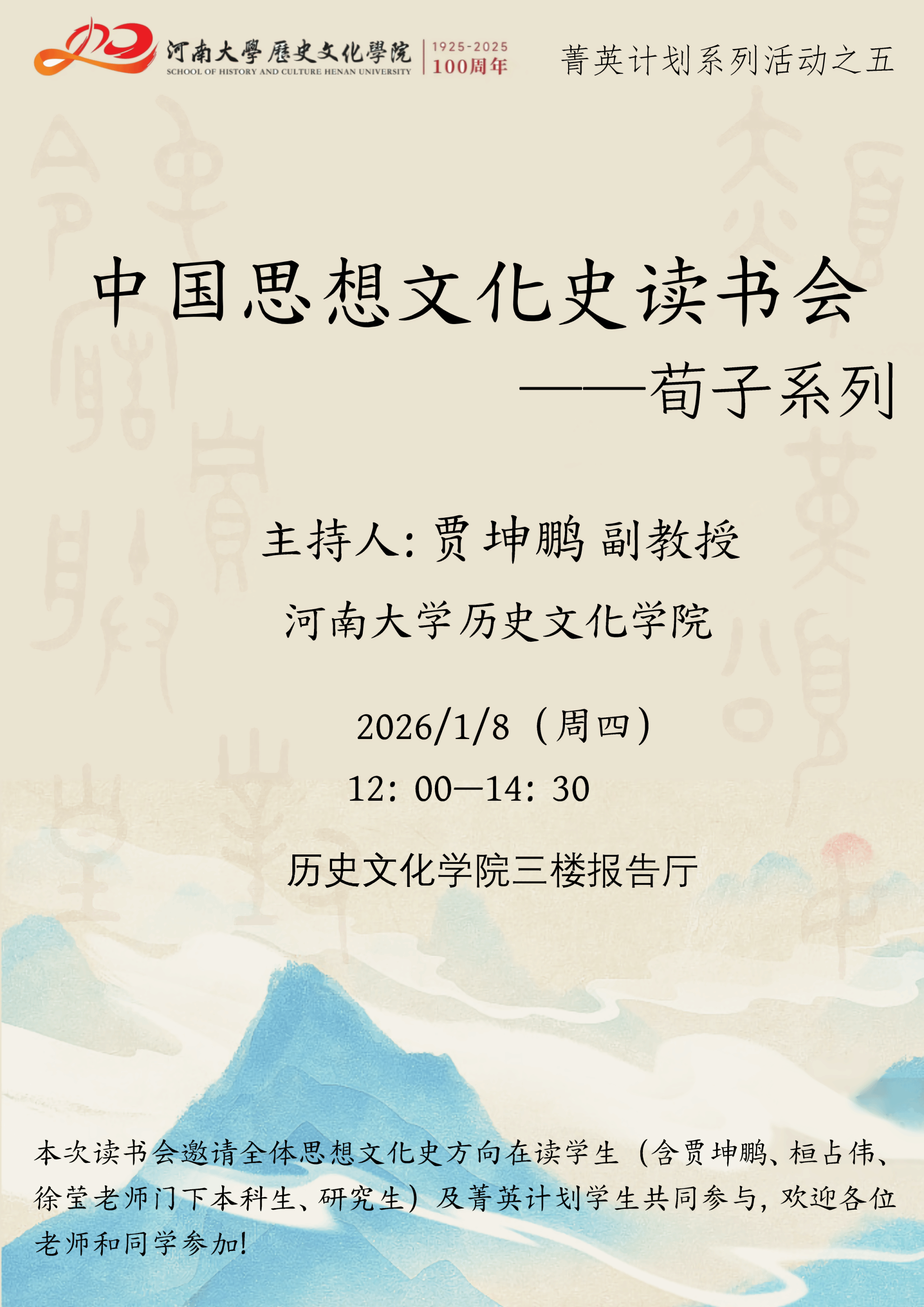 【讲座预告】菁英计划系列活动之五:中国思想文化史读书会——荀子系列