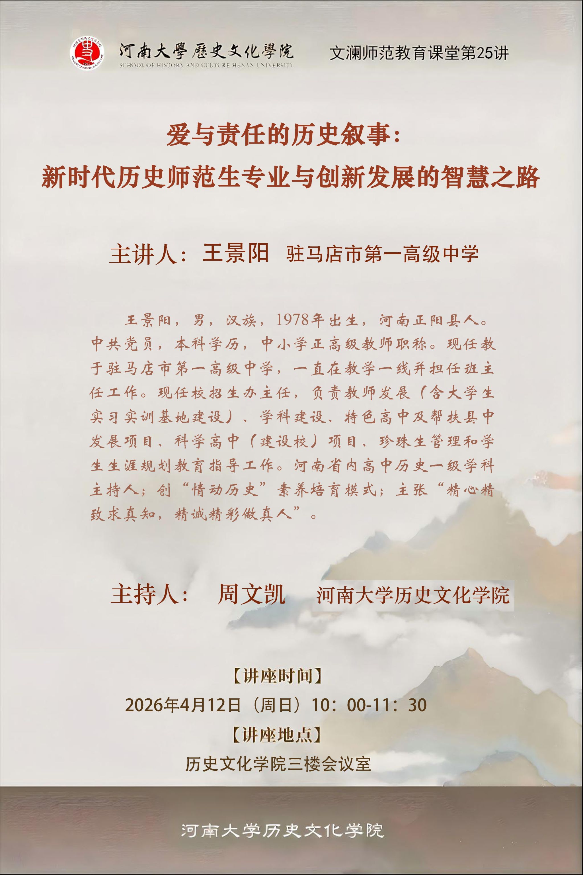 【讲座预告】爱与责任的历史叙事:新时代历史师范生专业与创新发展的智慧之路