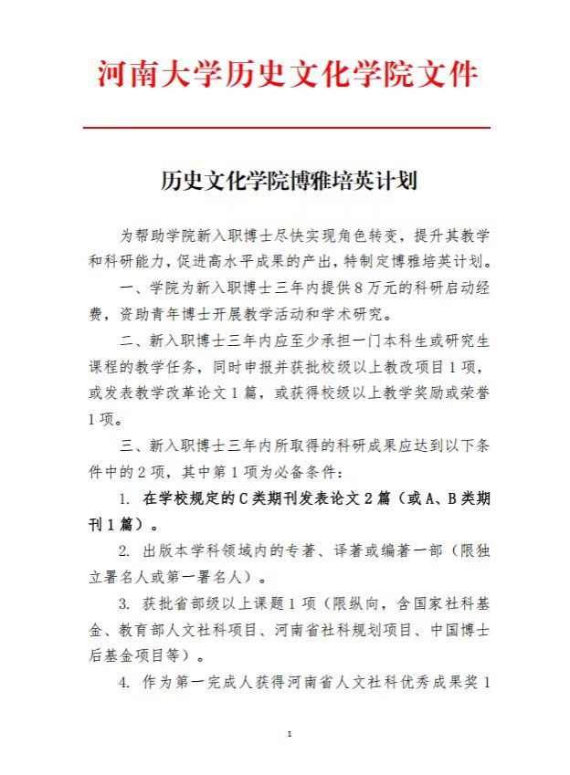 百人计划B岗;朱旭亮、顾纯光等11人获批国家社科基金青年项目,陈锴、李泽源分别在《中国史研究》《世界民族》等权威期刊发表论文;熊钿、王亚萍等获国家资助博士后研究人员计划B、C档,李泽源、王博凯等获批博士后特别资助,李鹏辉、谢佳芮等获批博士后面上基金项目;李彬森、秦存誉等获批河南省兴文化工程文化研究专项,陈时羽等获河南省博士后资助项目;韩鼎等获批省级校改项目;熊钿入选河南省“双一流”高校高层次人才境外培养项目,赴哈佛大学进行为期一年的访学。