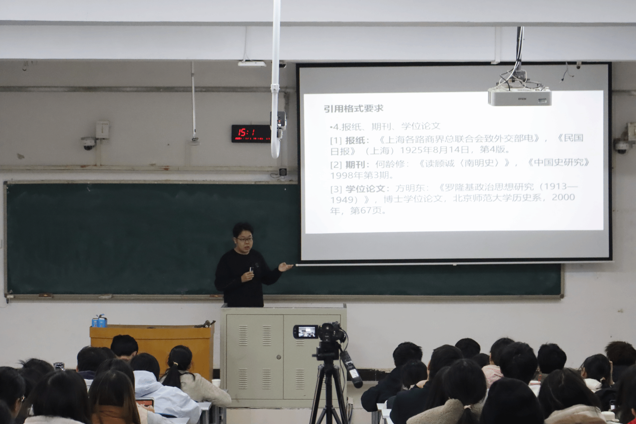 魏静远首先就“本科生历史学学术入门”作专题分享。他重点向大家介绍学术论文的基本结构及论文选题关键,并援引实例引导听者真切理解论文写作规范。最后,他鼓励本科生加强阅读积累,以此提升论文写作能力,促进学术入门。