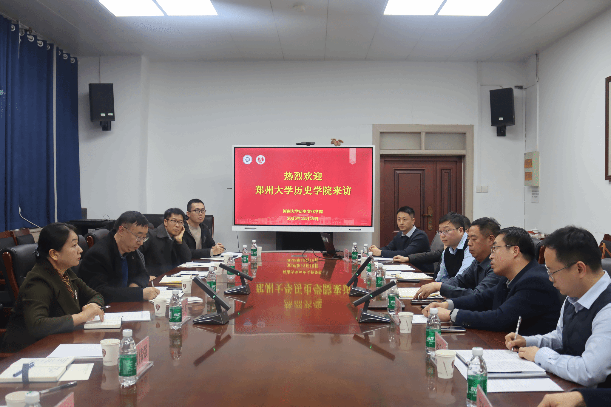 祁琛云阐述了学院以学科建设为核心的工作思路,介绍了学院推动高质量历史学科建设的具体措施,并详细说明了学院引导高水平成果产出、支持青年教师成长、重视学术交流与宣传的具体举措。吴志远介绍了郑州大学历史学院学科建设与人才工作的基本情况,表达了希望两院深入交流、优势互补、共同发展的期待。在随后交流中,双方就加强学术研究合作、分享发展新思路、共同提升河南历史学科的学术影响力与发展水平等话题展开了深入探讨。