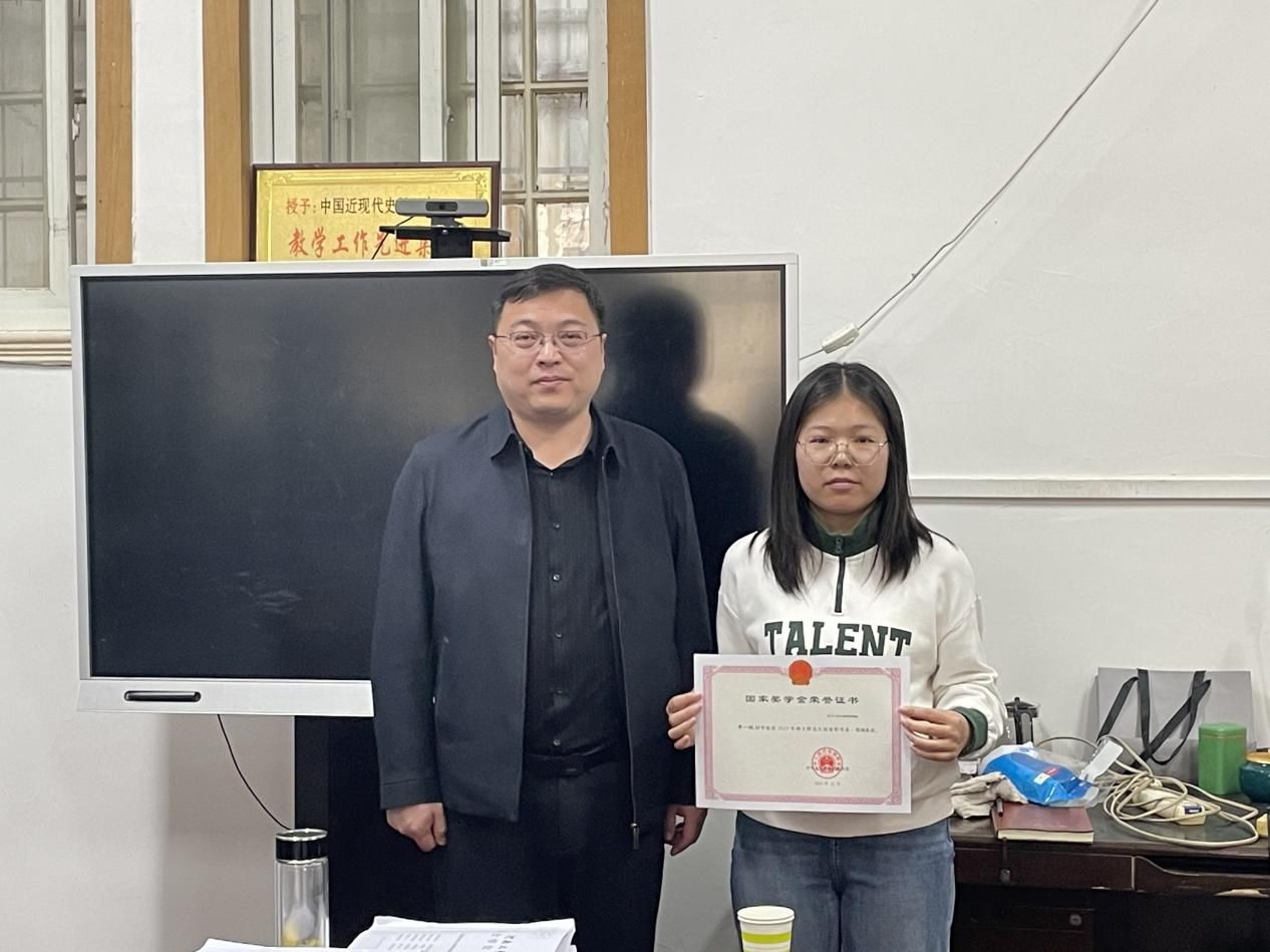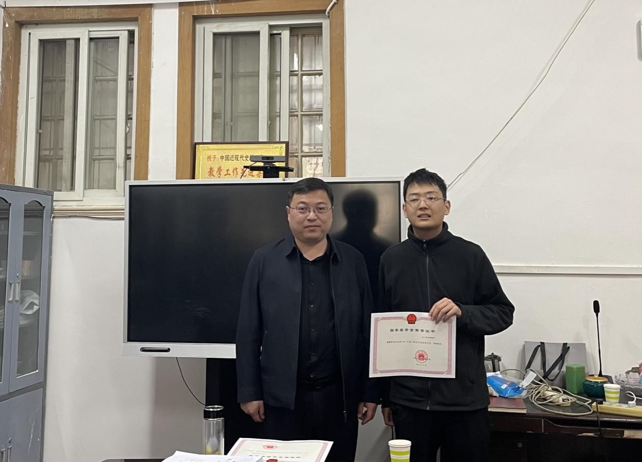 在表彰现场,学院党委副书记周文凯为本次荣获国家奖学金的研究生代表颁发了证书。他向获奖同学表示热烈祝贺,并勉励在场全体研究生同学,要以获奖同学为榜样,珍惜在校时光,恪守学术规范,锤炼科研本领,在最后的毕业阶段全力以赴,争取以优异的毕业论文和答辩成绩为自己的研究生生涯画上圆满句号;同时,要志存高远,将个人理想追求融入国家事业发展,未来在新的岗位上继续努力,做出贡献。